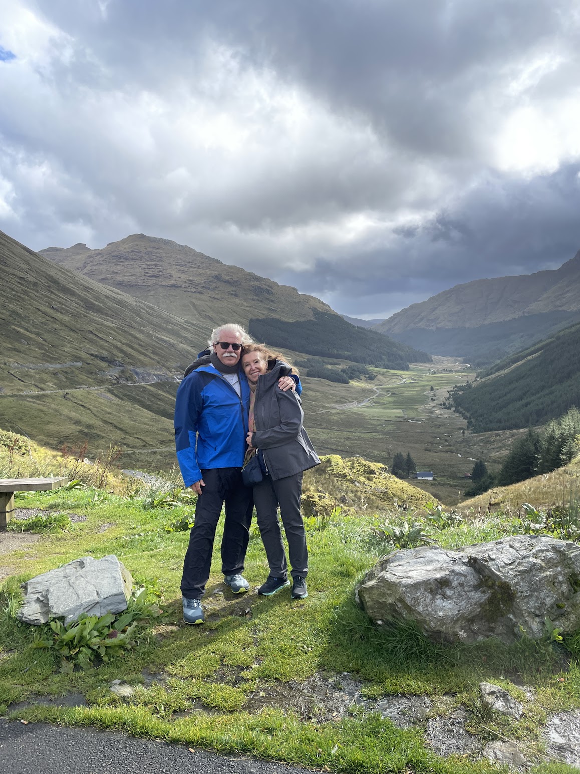 Spending five nights gave us a bit more time to explore. By far the biggest happening was spending Johnny’s 70th birthday with a private day tour in the Highlands. We cruised up Loch Lomond a lake you might recognize from the song The Bonnie, Bonnie Banks o’ Loch Lomond. We fit in a short viewing walk between rain along Glen Coe a spectacular area of valleys and mountain peaks. And, met a lad who didn’t talk but was happy to pose. Possibly a Highland actor? I’ve added the photo, so you can see what you think.